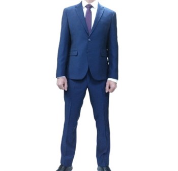 Мужской костюм двойка сшит из жаккардовой темно-синей однотонной ткани. Ширина низков брюк на размер 50/170 - 19,5 см.
