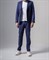 Мужской костюм двойка сшит из плотной ткани жаккард синего однотоного цвета. Ширина низков брюк на размер 46/188 - 18,5 см.