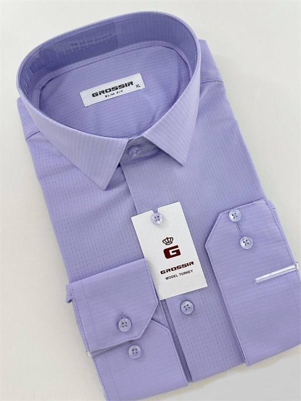 Сорочка мужская фиолетовая в мелкую полоску